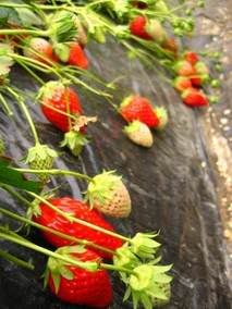 the strawberry field seemed to go on forever…. closer………………….lookie the chili-shaped strawberry!! ![]()