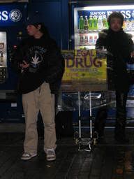 after the 1.5 hr bus ride & 30 min train ride, we were in shibuya. here are some interesting things i saw before we got to the club. if anyone needs legal drugs or condoms, these are ur spots. ![]()