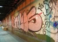 i ended up missing my bus home to kamisu that nite, so i had to go back to shinjuku to stay with tee. while gettin lost tryin to find her place on my own, i came across some graff. not that great, but it’s the most noteworthy i’ve seen yet.
