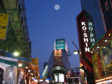 here’s a shot of ueno at nite. i really dig the way the moon is smack in the center of this picture.