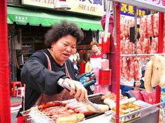 while walking through the many markets there, i came across this vendor that sold this chinese snack. it’s kinda like a dumpling but in a smooshed circular form (like a pupusa, for those of u who are familiar with salvadorian). miraculously, the thing didn’t have meat! i had to have some!! the vendor guy was hilarious, so i had to get a picture of him for memory’s sake ![]()