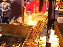 after the temple, my uncle, kevin and myself went to a nearby street market to get some food. even tho i’ve been to the markets many times before, it was slightly different this time since it was new years. laterns everywhere, booths line in red, vendors dressed in red wishing their customers a happy new year.. it was just “so cool”