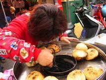 or.. CREAM PUFFS!!!! there are hella cream puff vendors at the train station. u can smell them a mile away. hmm… i sure could use on right about now…*drool*